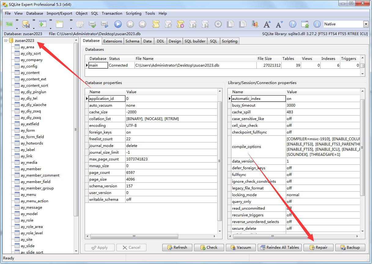 2:打開軟件,導入數據庫,選擇修復 按鈕Repair。